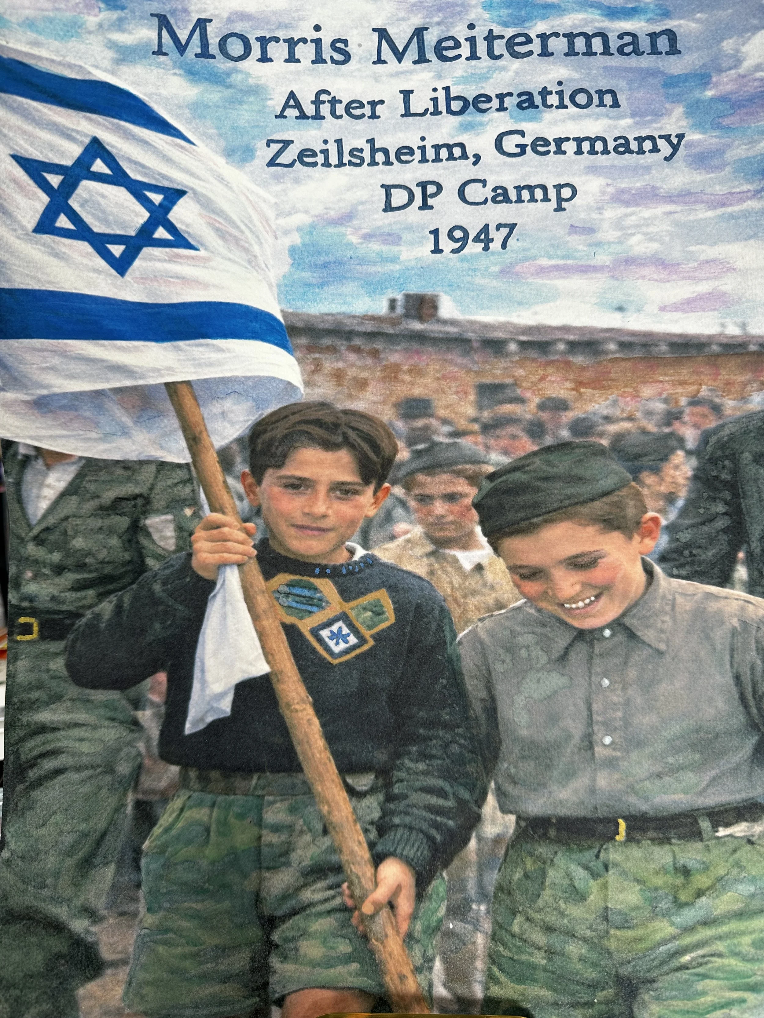 This piece honors Morris Meiterman and his friend Sam Domb as young boys photographed in 1947 in the Zeilsheim Displaced Persons Camp in Germany after liberation, after surviving the Holocaust, and just before the State of Israel was officially born. The original photograph is part of the collection at the United States Holocaust Memorial Museum.